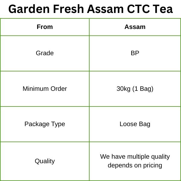 Assam BP (Broken Pekoe) is a premium-grade CTC tea known for its round shape, bright liquor, strong taste, and clean mouthfeel.